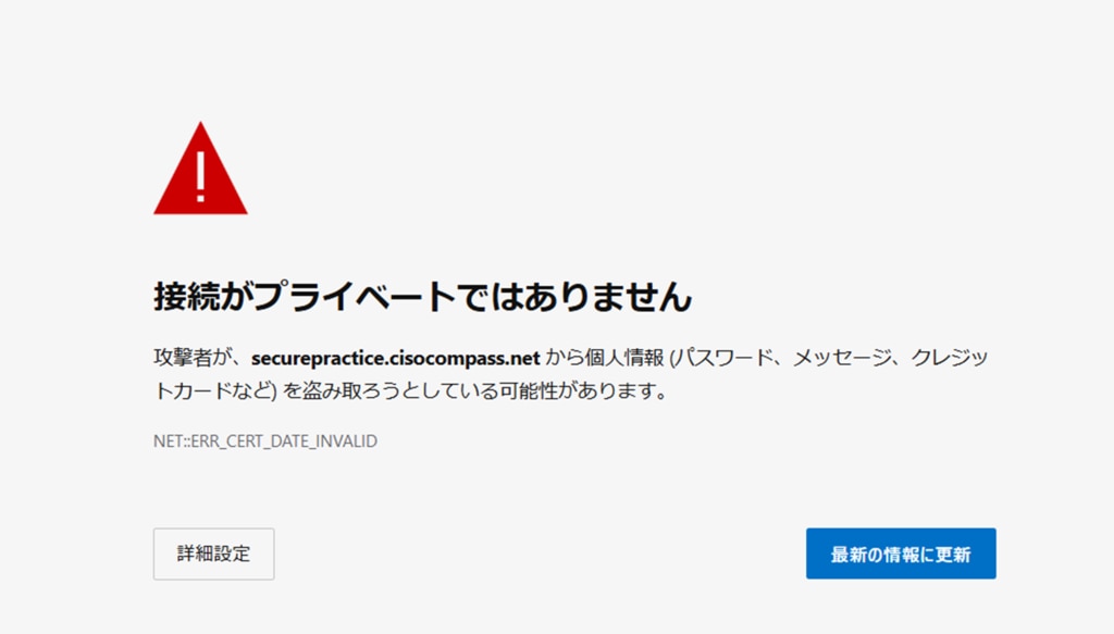・セキュアプラクティス接続の際に、Webブラウザーで「接続はプライベートではありません」のエラー画面となる。